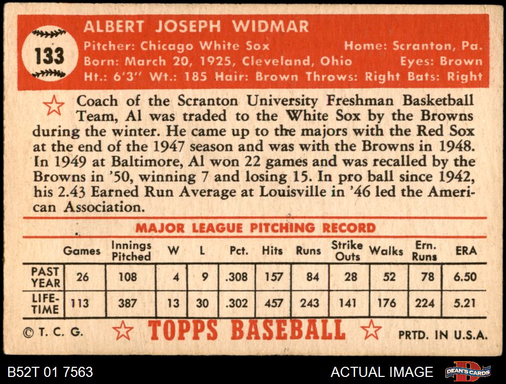 1952 Topps #133 CRM Al Widmar 4 - VG/EX