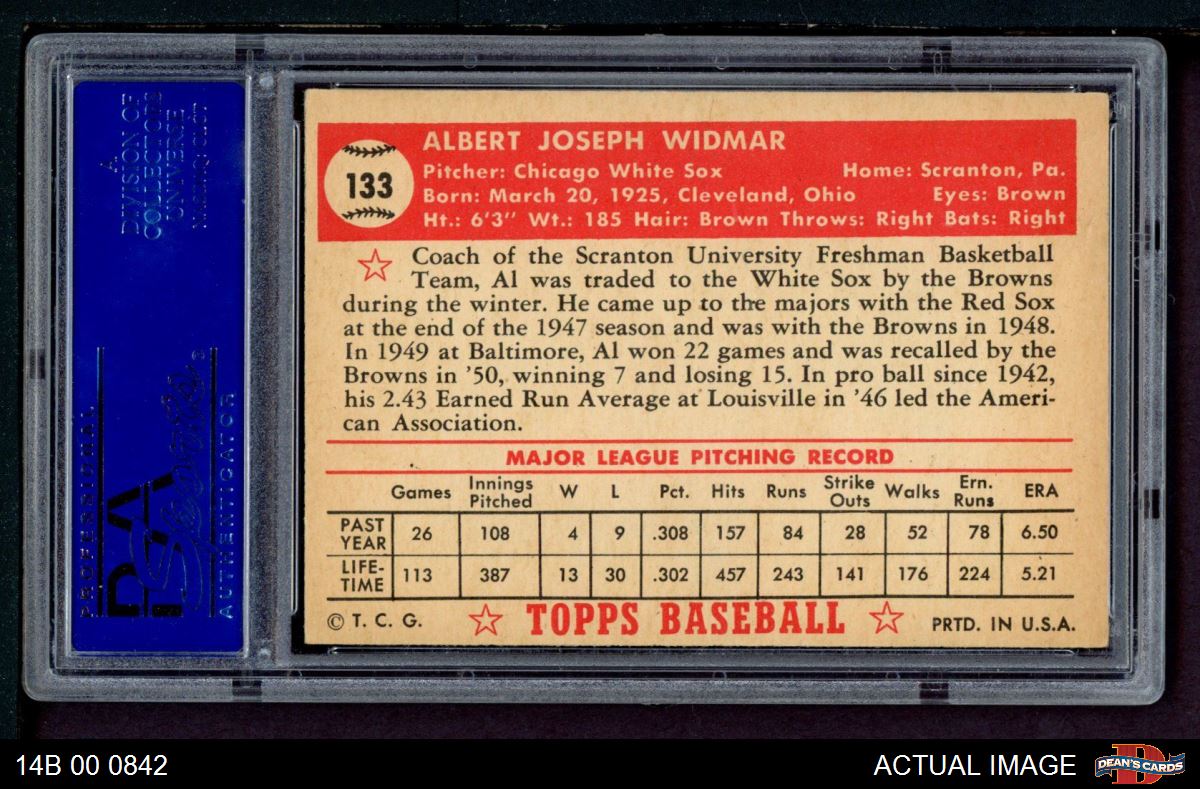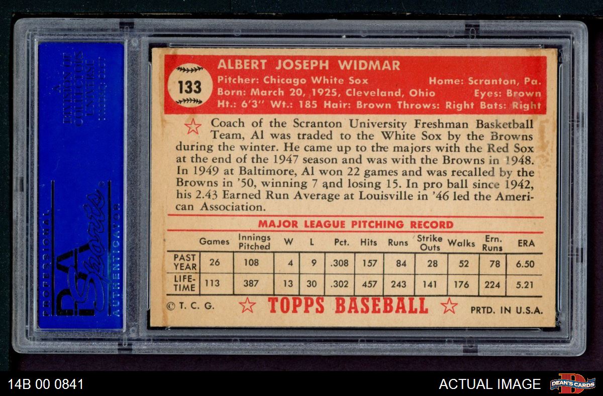 1952 Topps #133 CRM Al Widmar PSA 6 - EX/MT