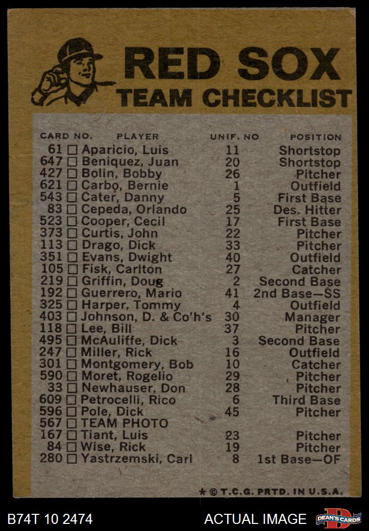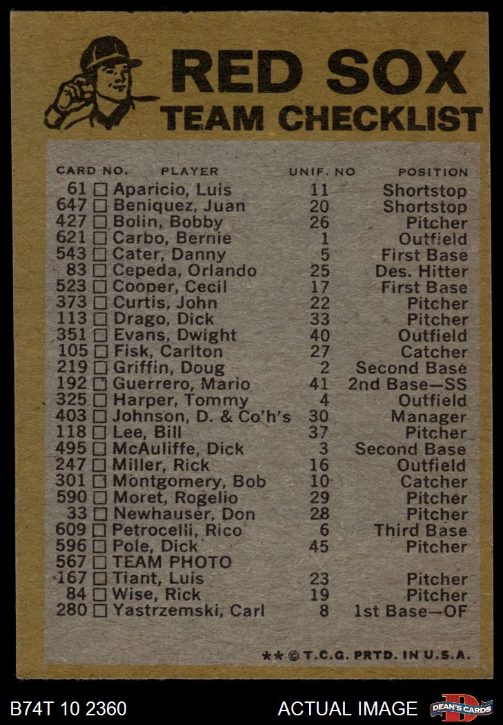 1974 Topps Baseball Cards (16,005 available)1974 Topps Red Team Checklist Red Sox (52 available)