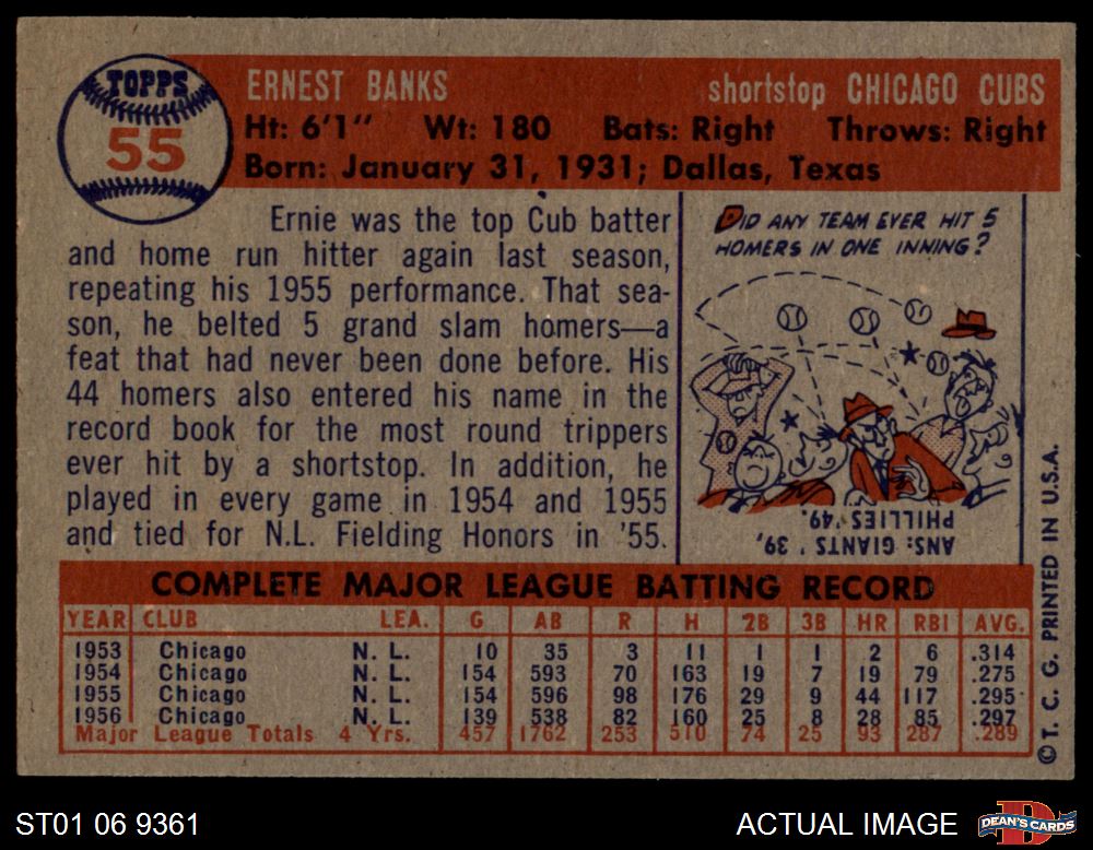 1957 Topps #55 Ernie Banks 5 - EX