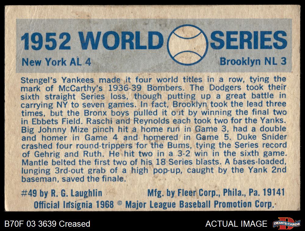 1970 Fleer World Series #49  -  Johnny Mize  / Duke Snider 1952 Yankees vs. Dodgers Front Thumbnail