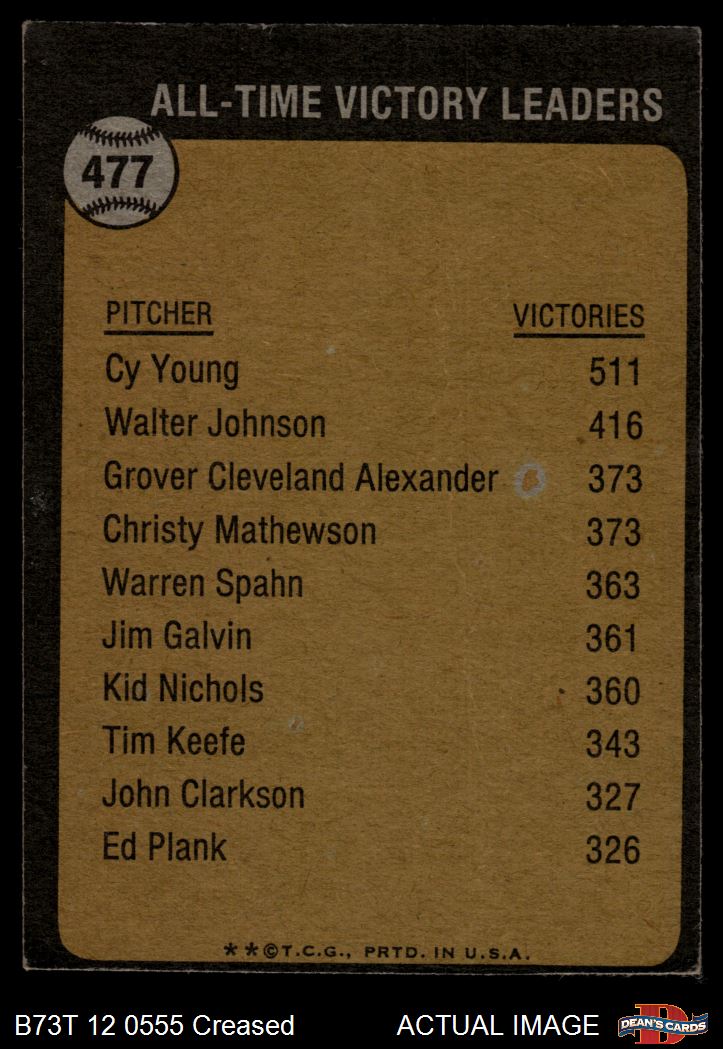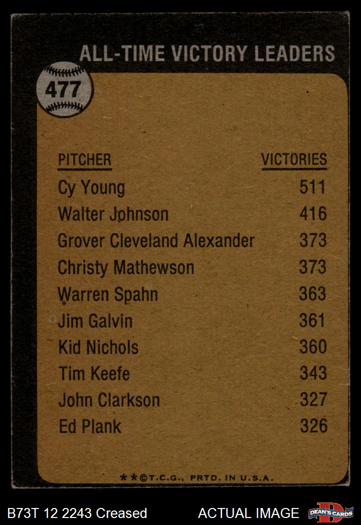 1973 Topps #477 - Cy Young All-Time Victory Leader 2 - GOOD