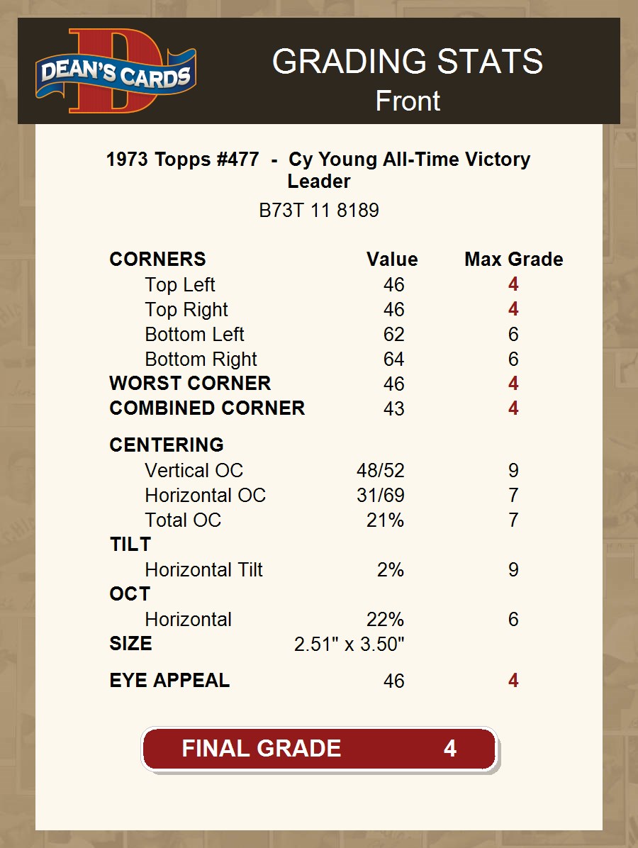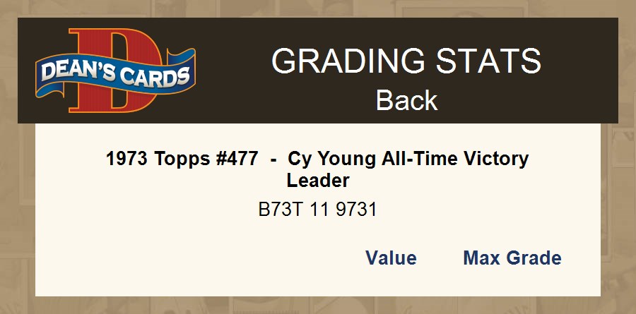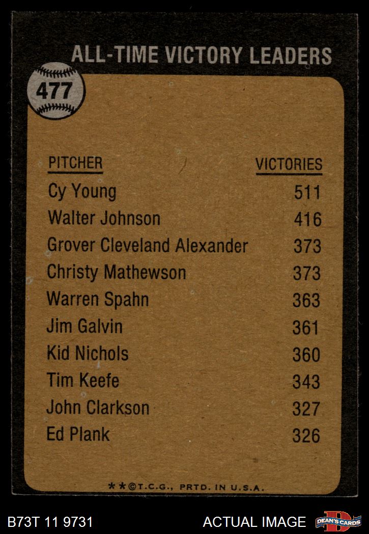 1973 Topps #477 - Cy Young All-Time Victory Leader 4 - VG/EX