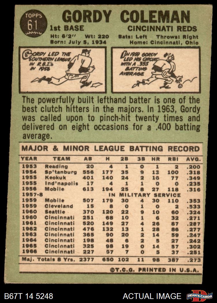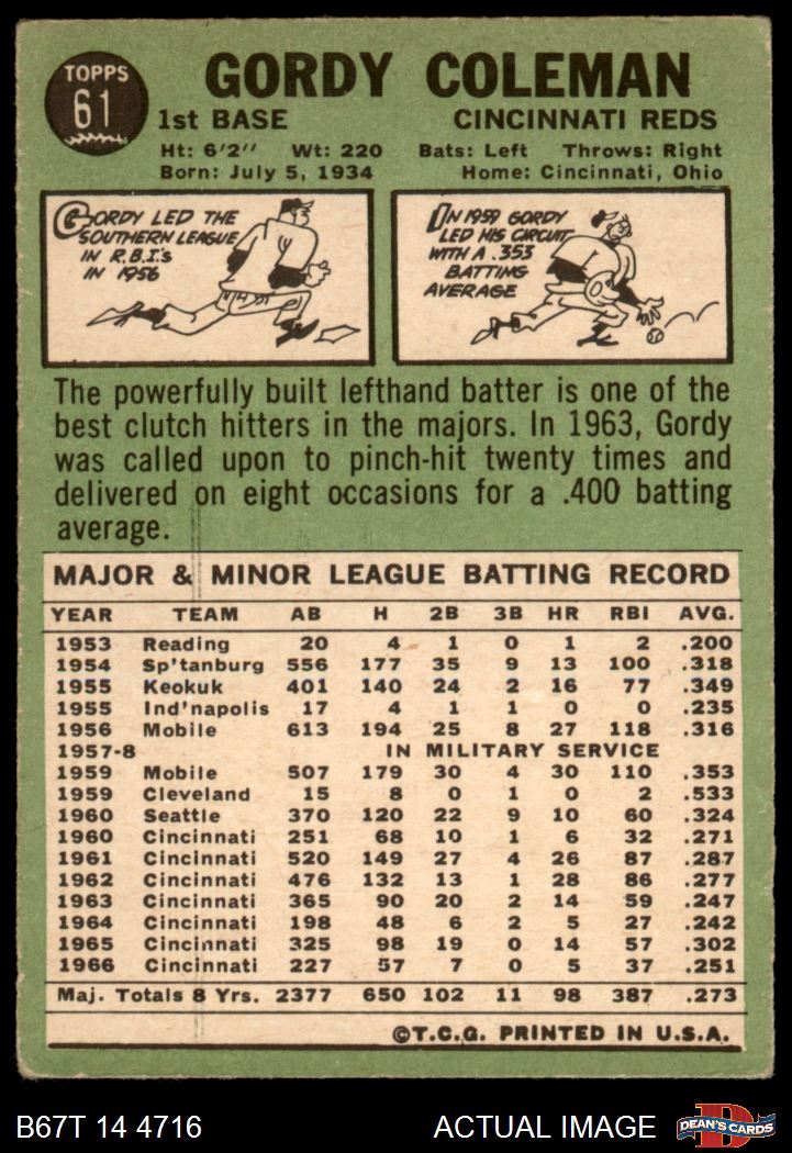 1967 Topps #61 Gordy Coleman 1.5 - FAIR