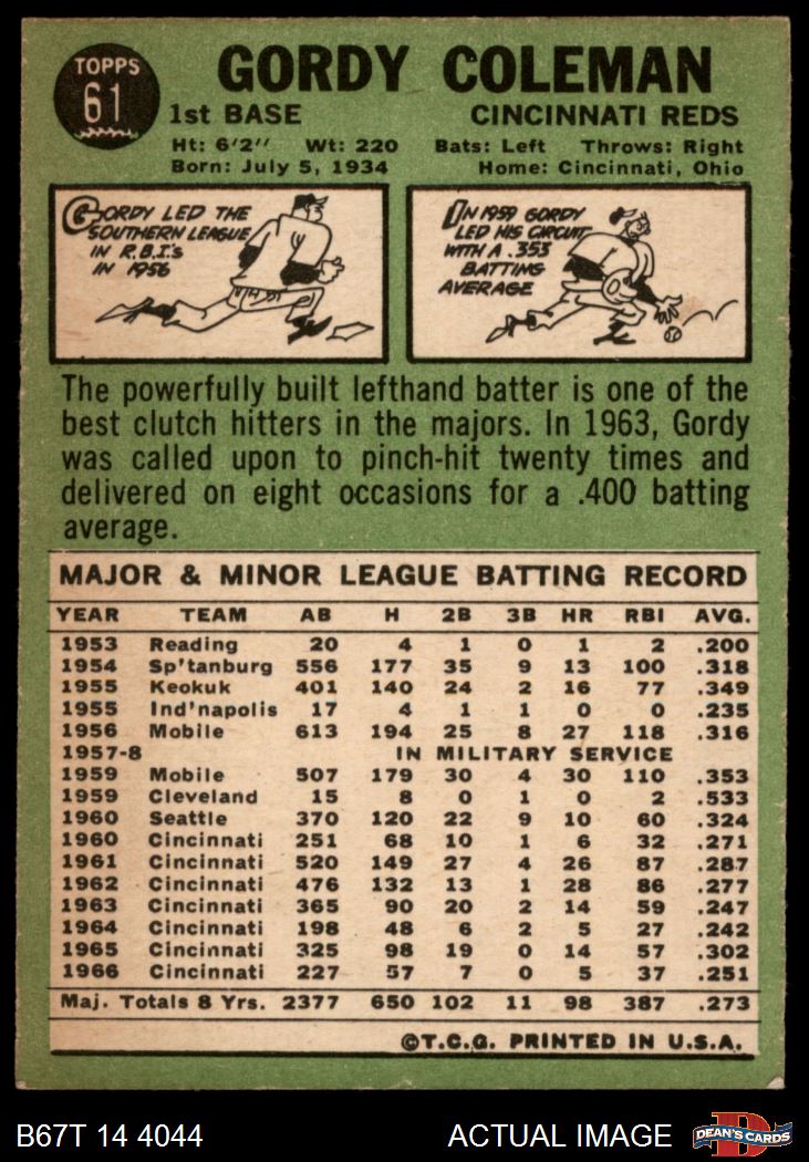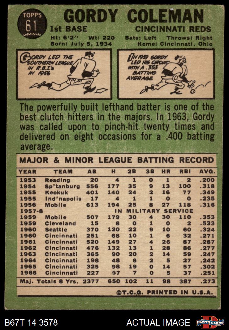 1967 Topps Baseball Cards (11,572 available)1967 Topps Reds (755 available)