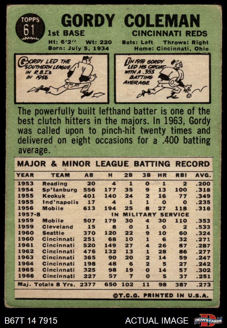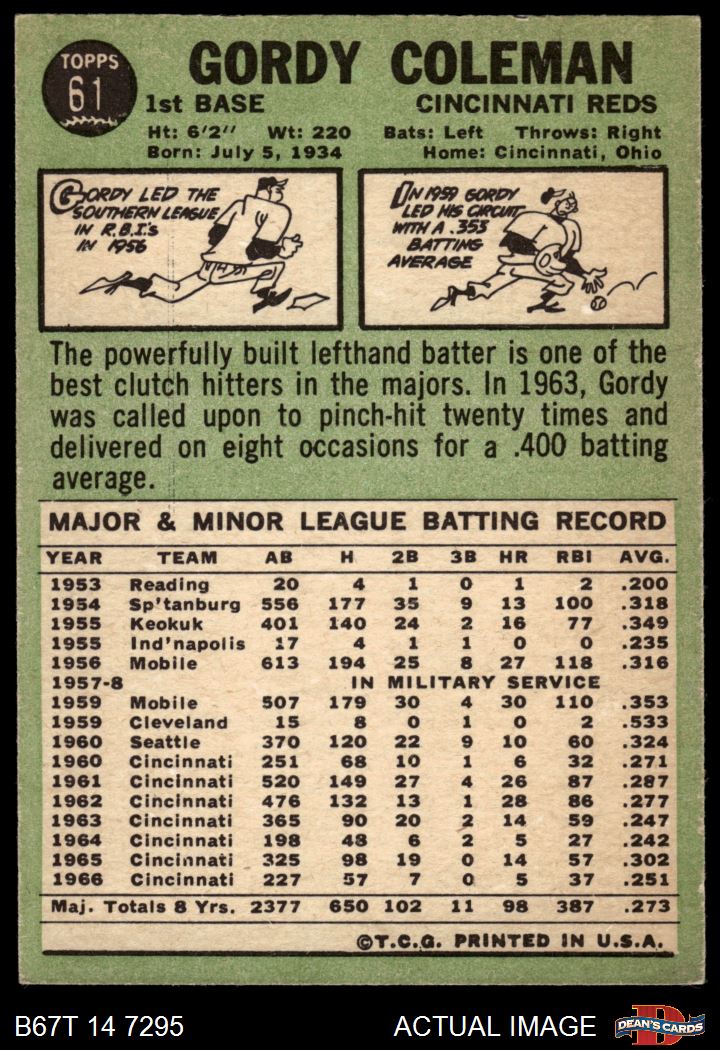 1967 Topps #61 Gordy Coleman