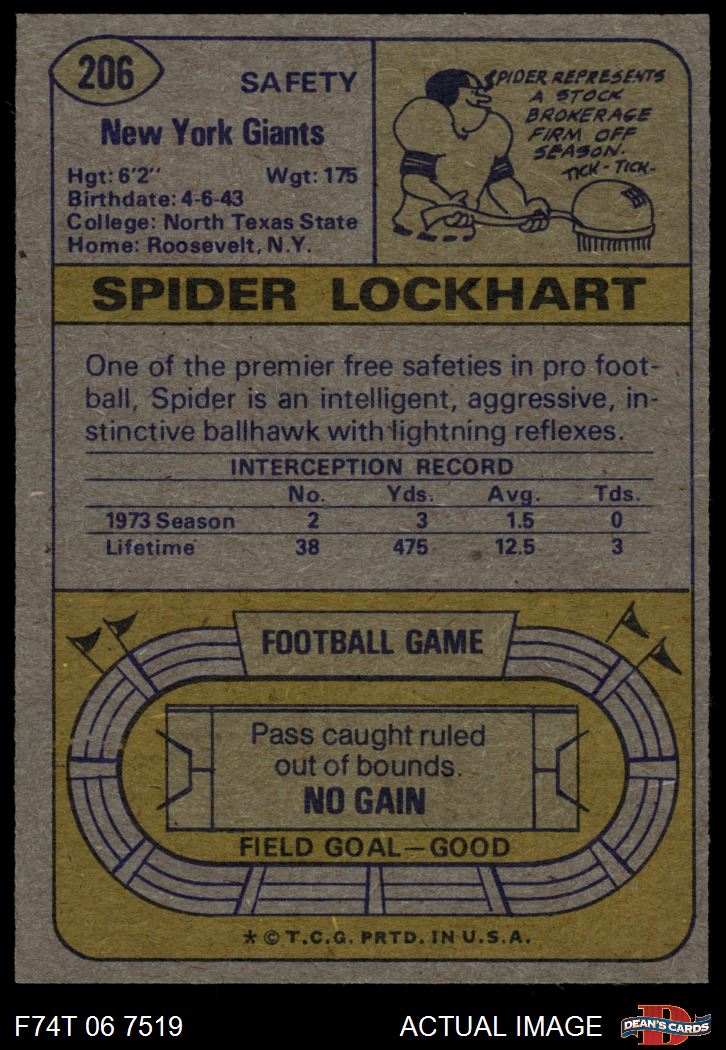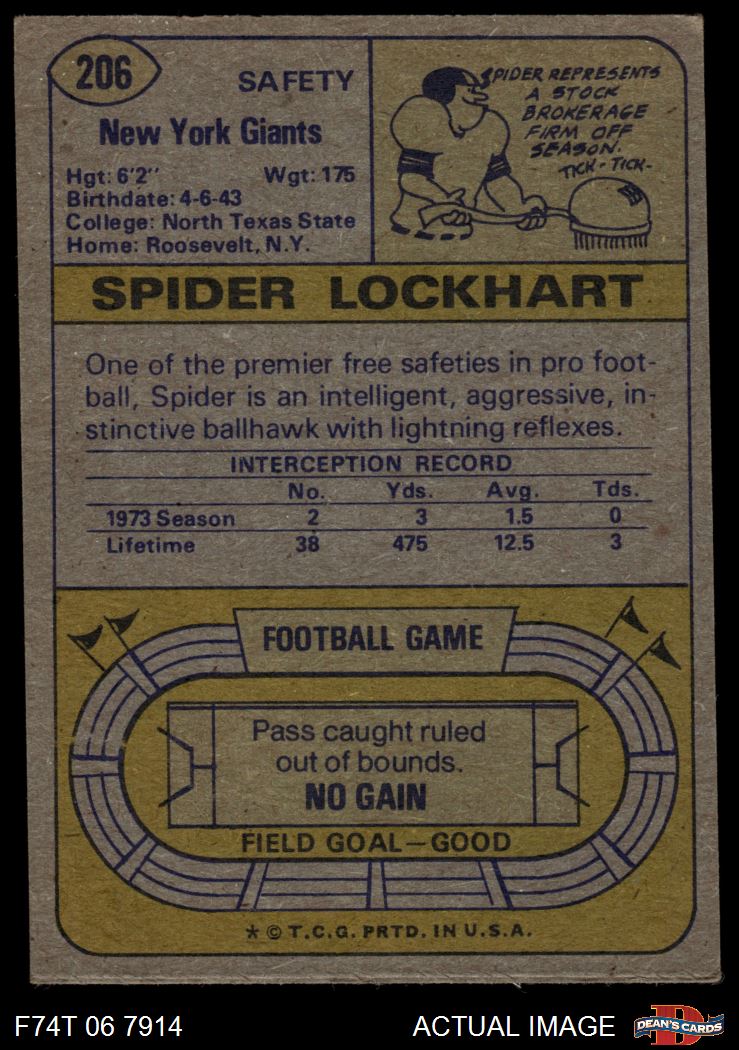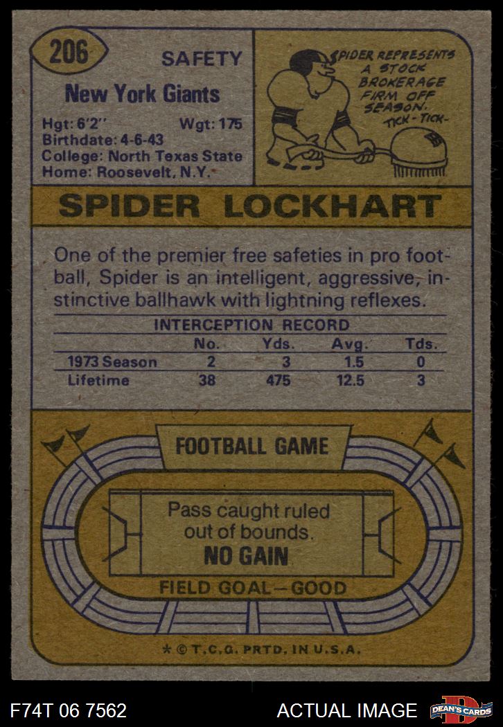 1974 Topps #206 Spider Lockhart