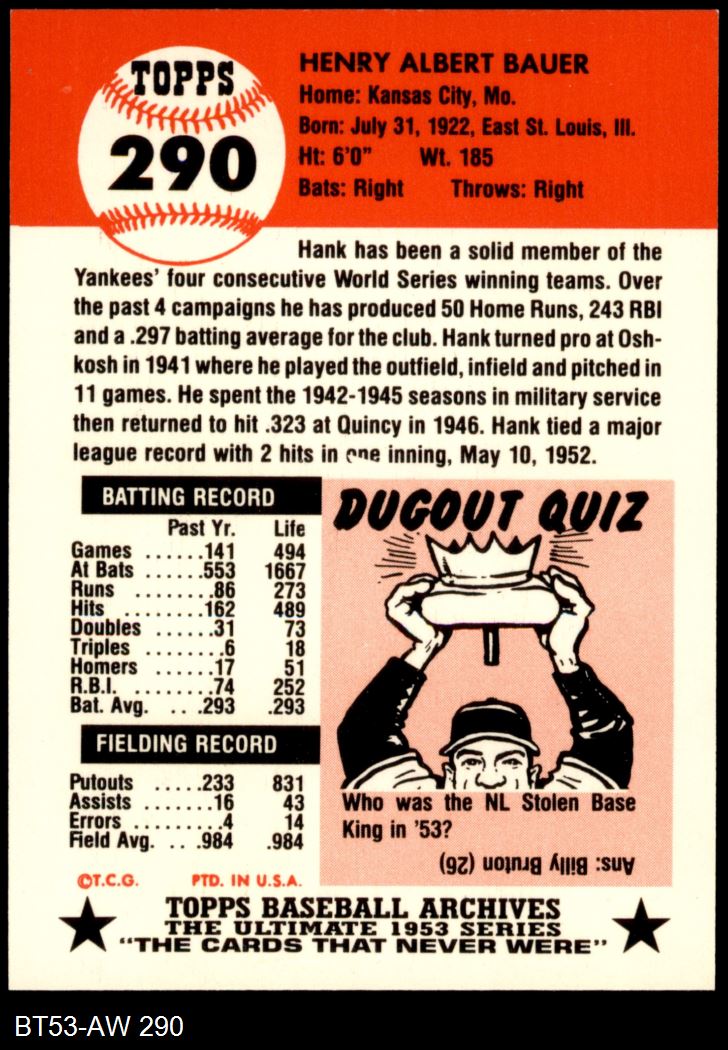 1953 Topps Archives #290 Hank Bauer 8 - NM/MT