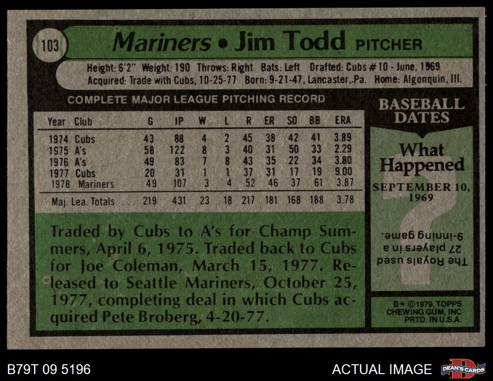 1979 Topps #103 Jim Todd 5.5 - EX+