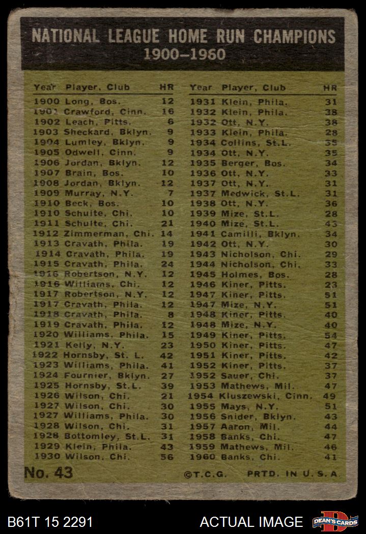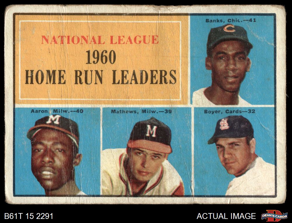 1961 Topps #43 - Hank Aaron / Ernie Banks / Ken Boyer / Eddie Mathews NL HR Leaders 1 - POOR
