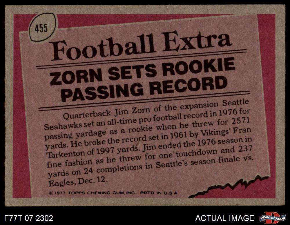 1977 Topps #455 - Jim Zorn Record Breaker 4 - VG/EX