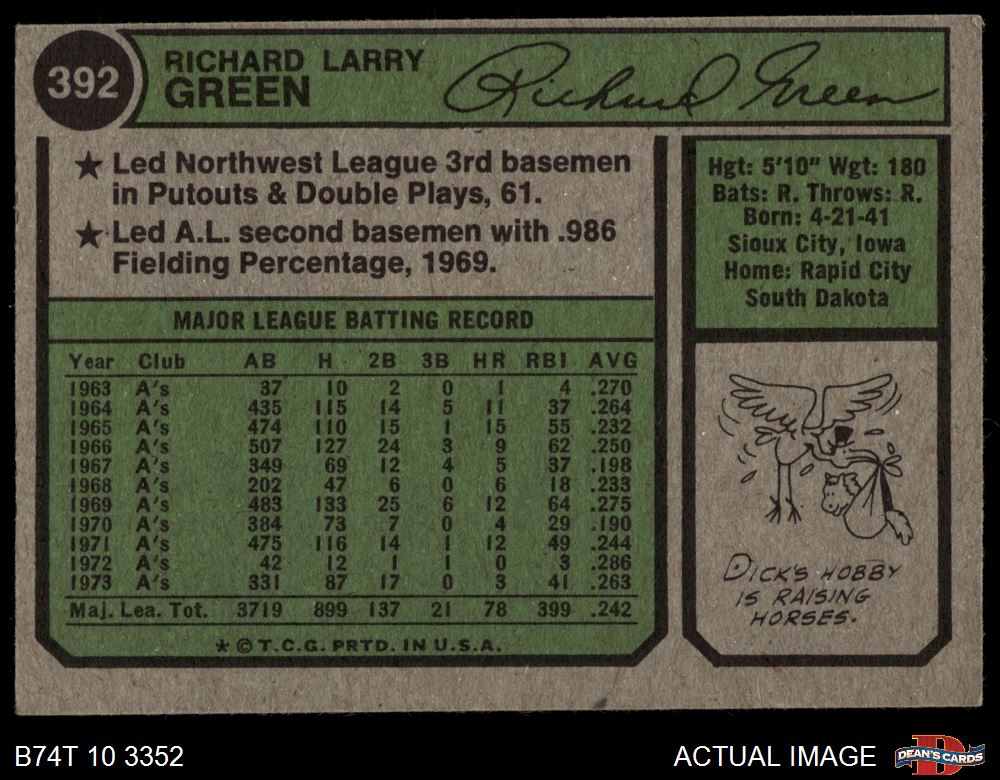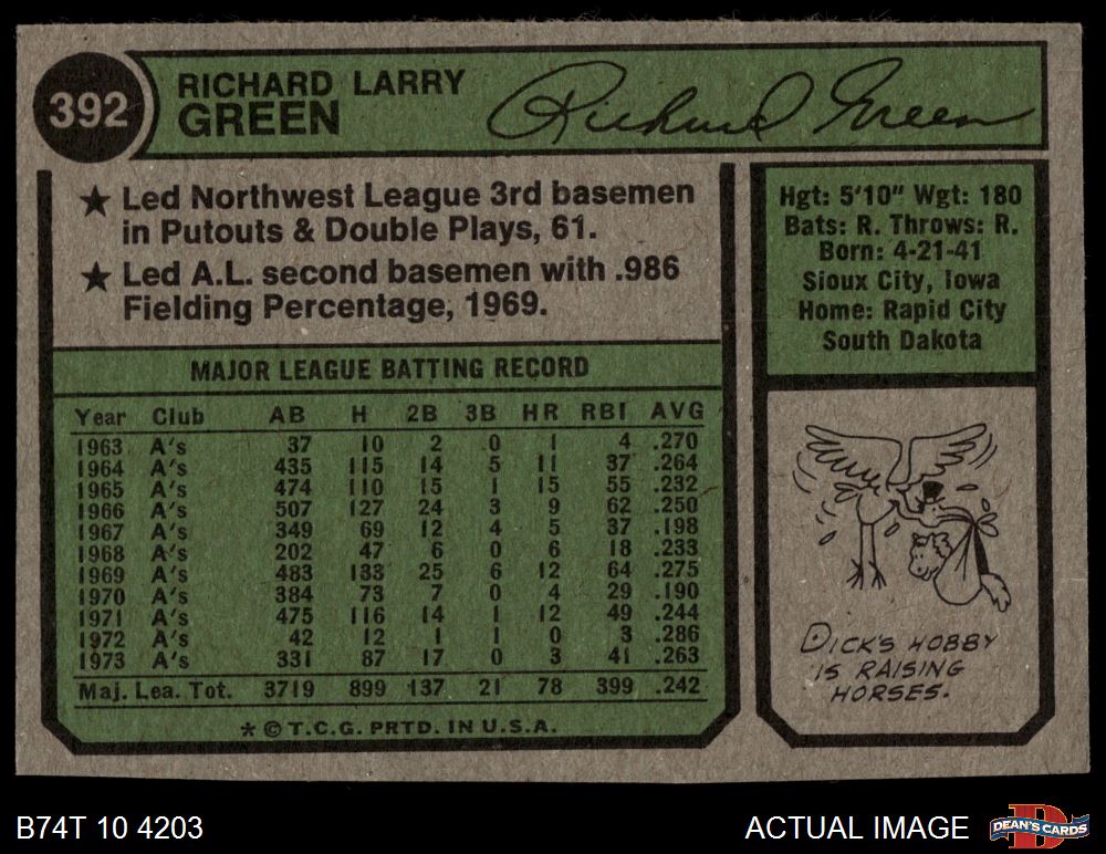 1974 Topps #392 Dick Green