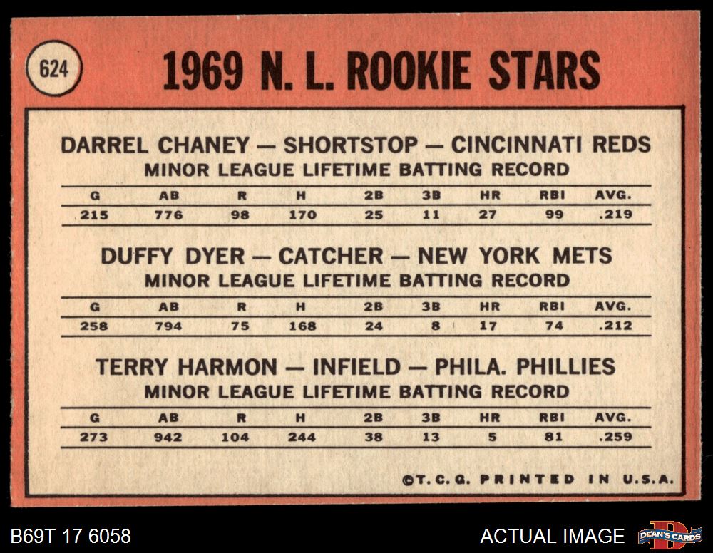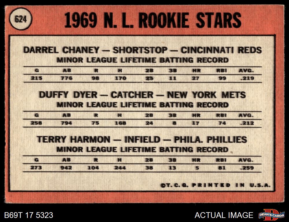 1969 Topps #624 - Darrel Chaney / Duffy Dyer / Terry Harmon NL Rookies 2 - GOOD