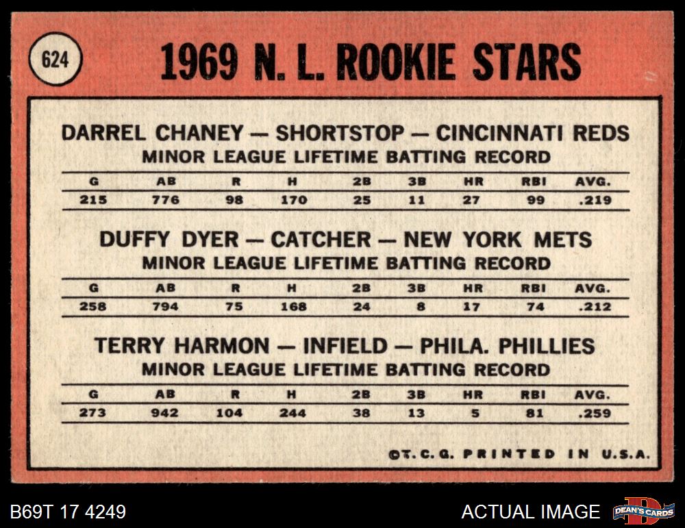 1969 Topps #624 - Darrel Chaney / Duffy Dyer / Terry Harmon NL Rookies 5 - EX