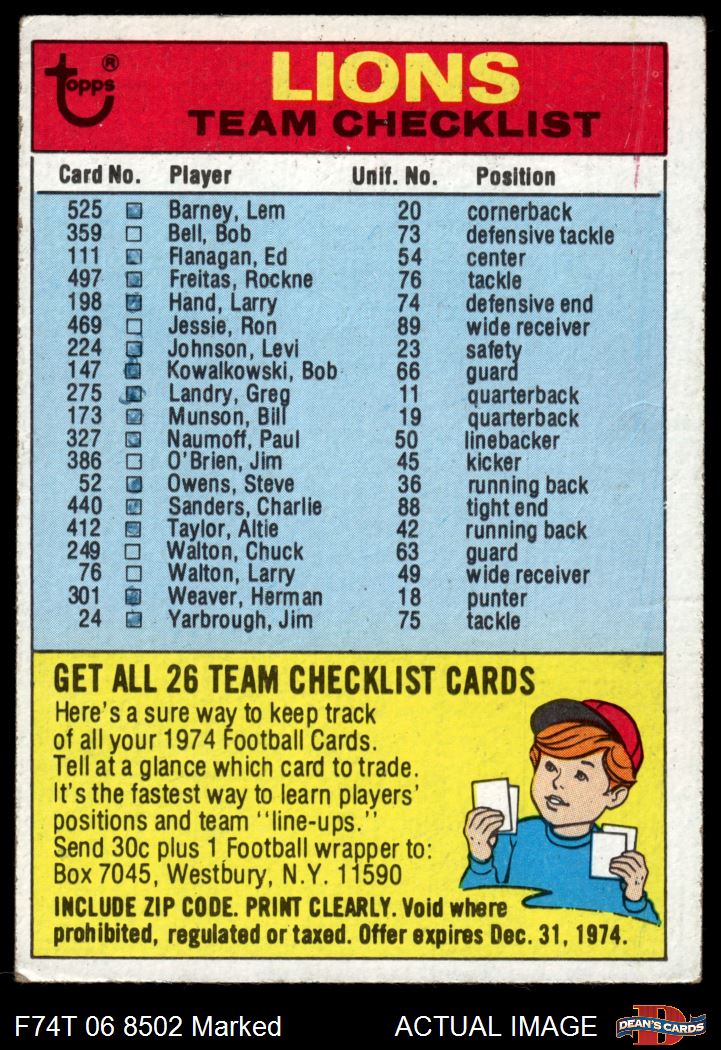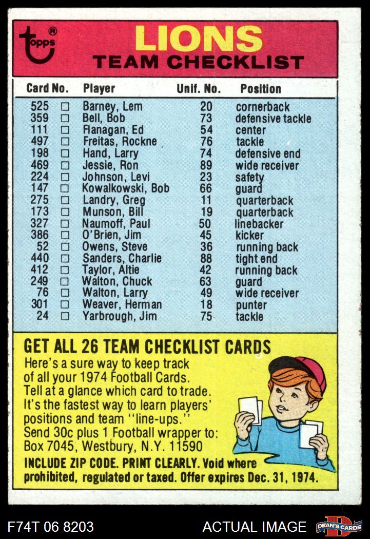 1974 Topps Football Cards (12,235 available)1974 Topps Checklist Lions (13 available)