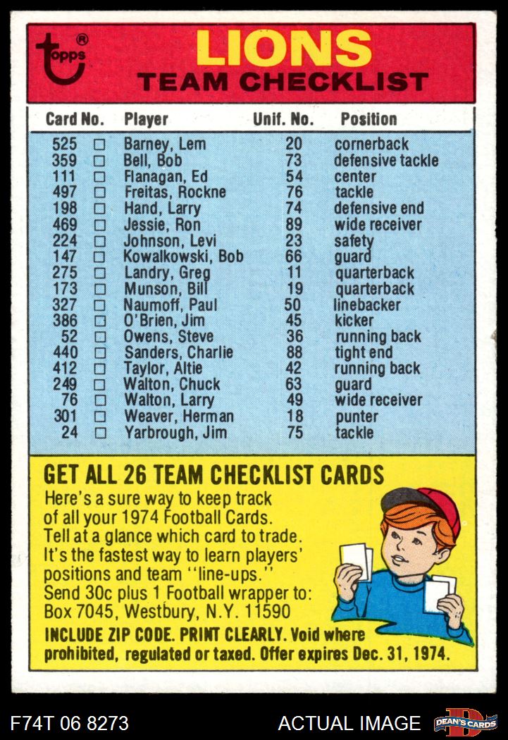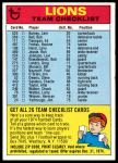 1974 Topps Checklist Detroit Lions Team 5 - EX