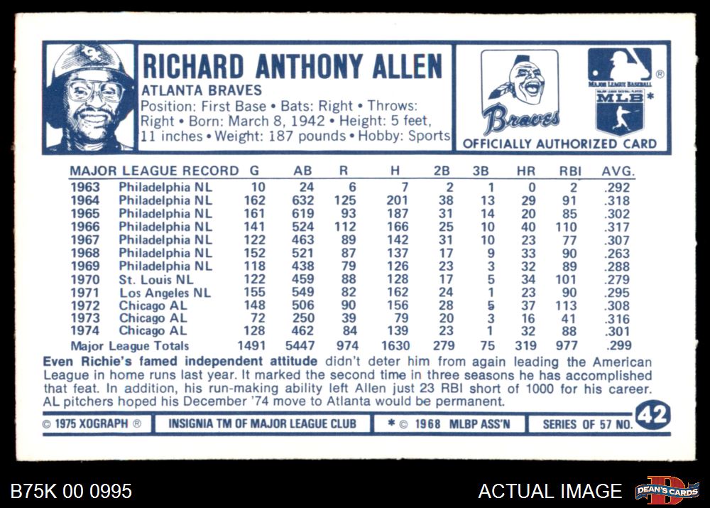1975 Kellogg's #42 Rich Allen 8 - NM/MT