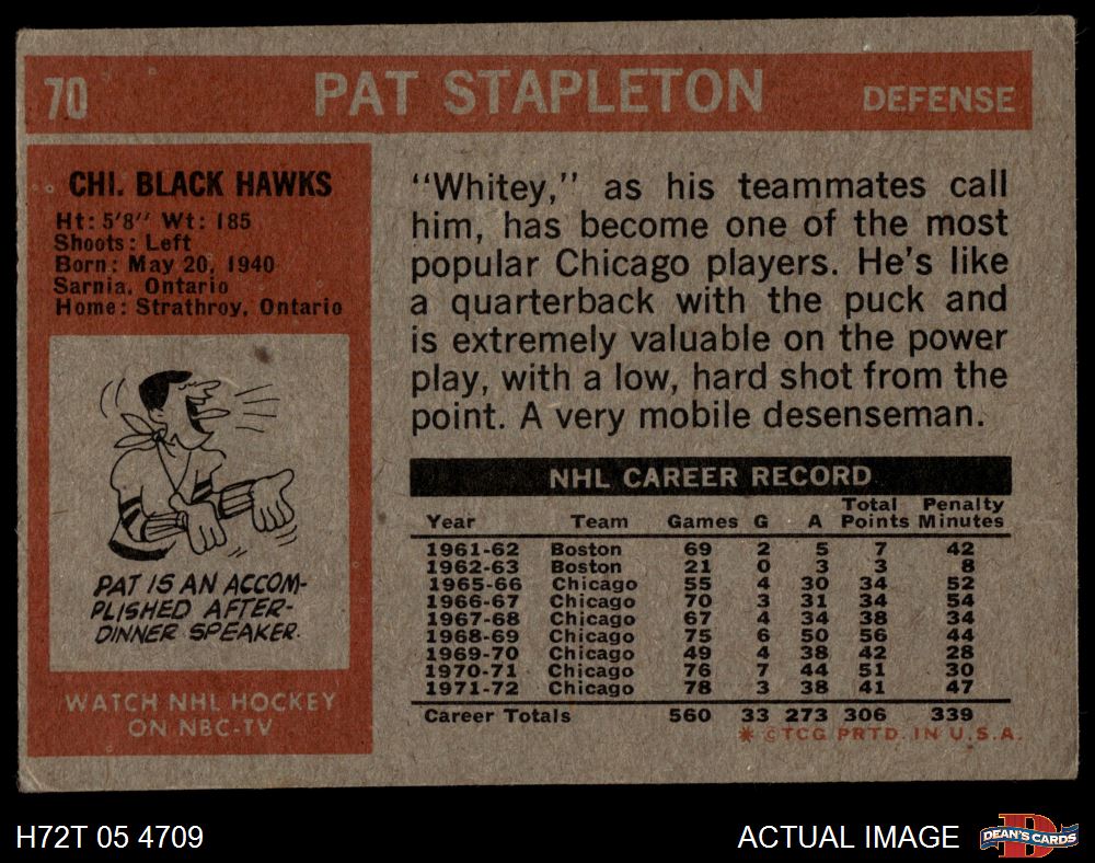1972 Topps #70 Pat Stapleton 2 - GOOD