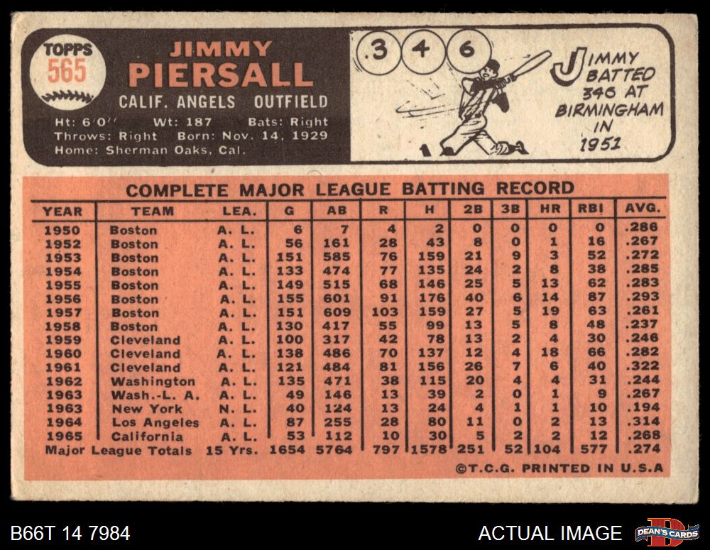 1966 Topps #565 Jimmy Piersall 2 - GOOD