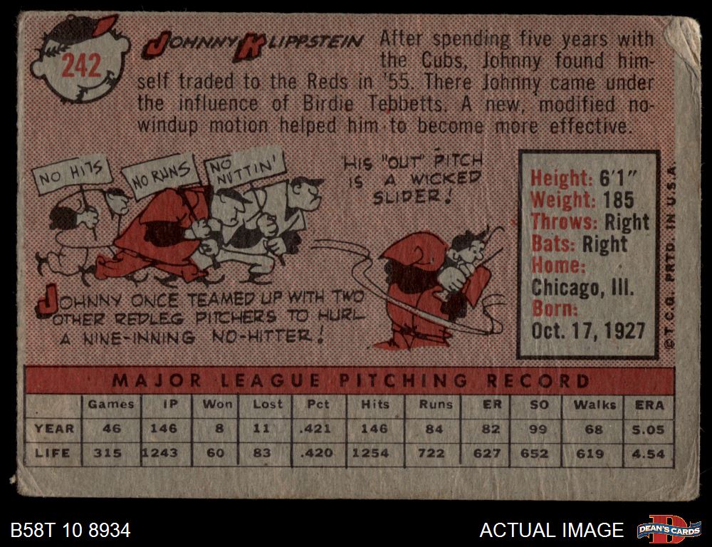 1958 Topps #242 Johnny Klippstein 1 - POOR