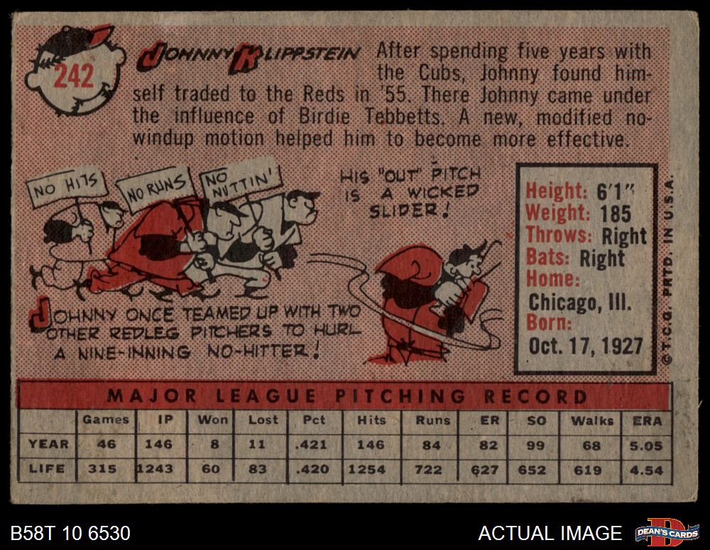 1958 Topps #242 Johnny Klippstein 3 - VG