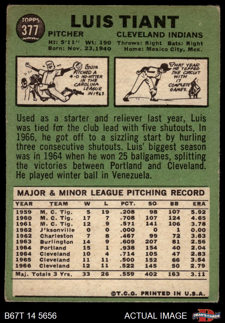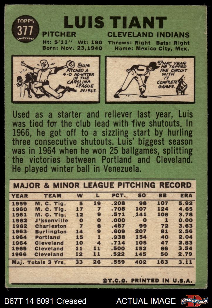 1967 Topps #377 Luis Tiant 1.5 - FAIR
