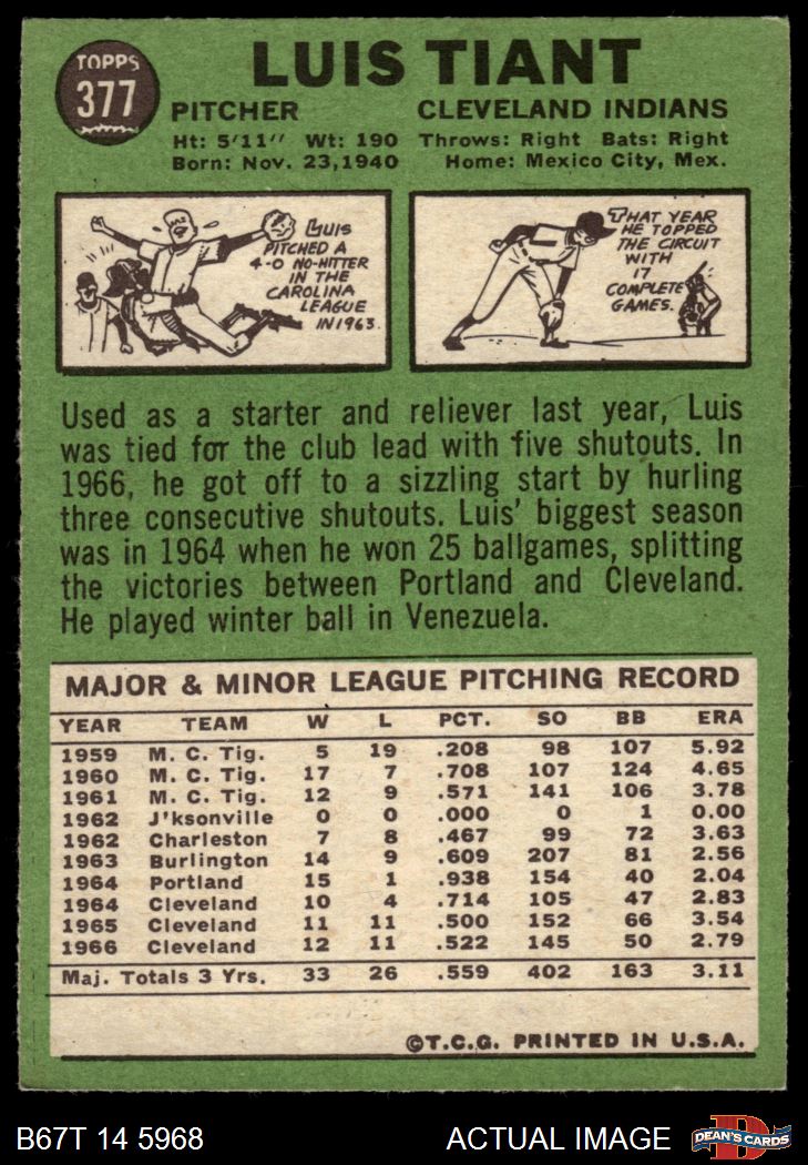 1967 Topps #377 Luis Tiant