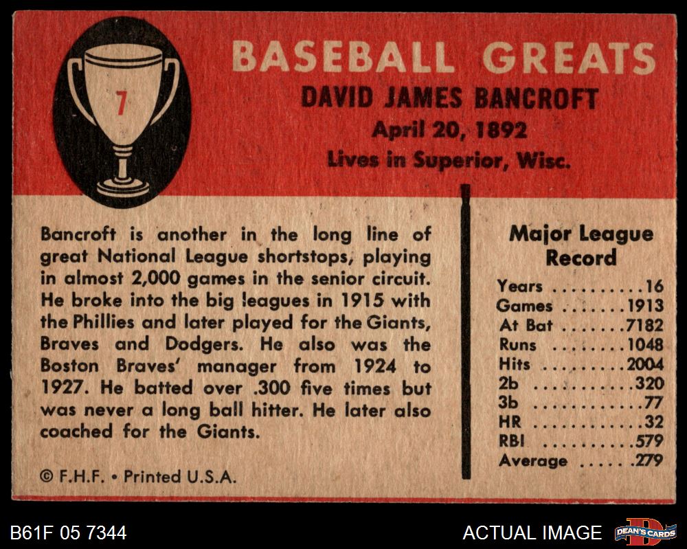 1961 Fleer #7 Dave Bancroft 1.5 - FAIR