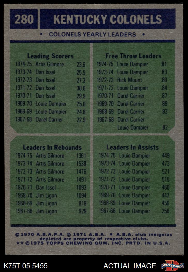 1975 Topps #280 - Louie Dampier / Artis Gilmore Colonels Leaders 6 - EX/MT