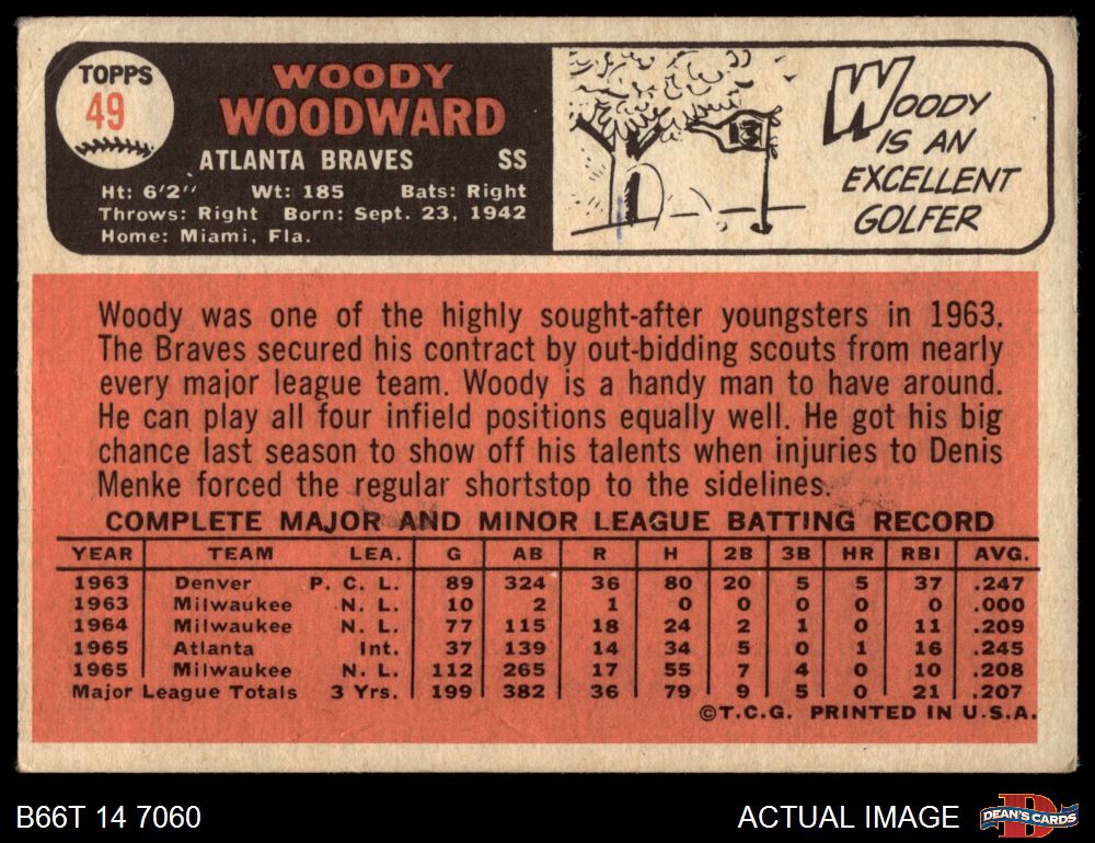 1966 Topps #49 Woody Woodward 3.5 - VG+