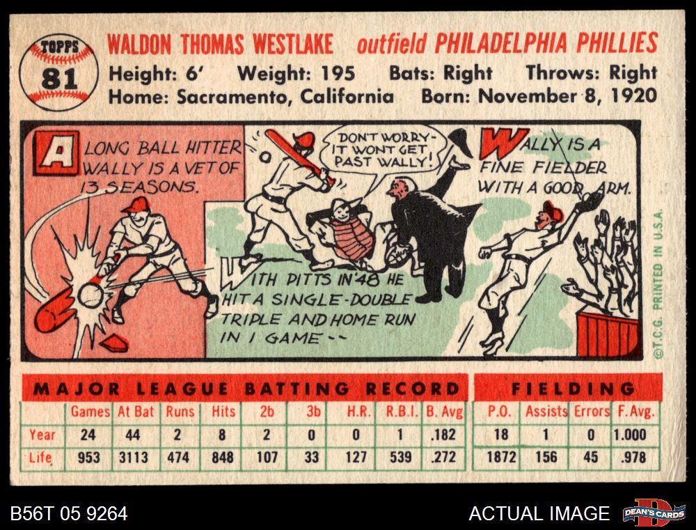 1956 Topps #81 Wally Westlake 6 - EX/MT