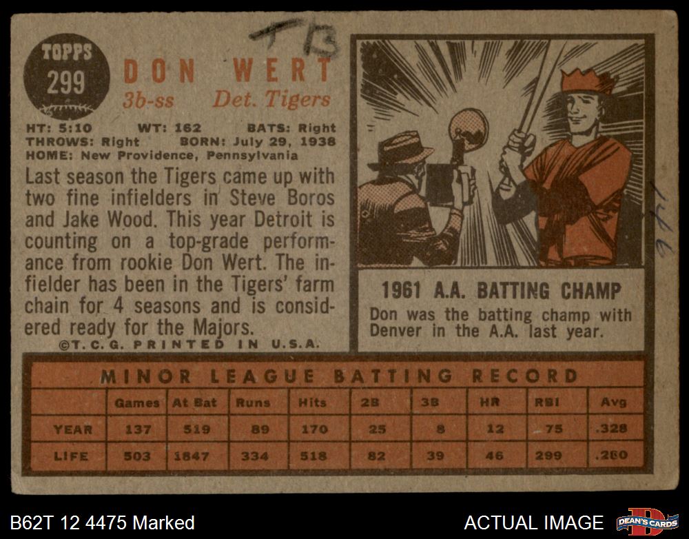 1962 Topps #299 Don Wert 1.5 - FAIR