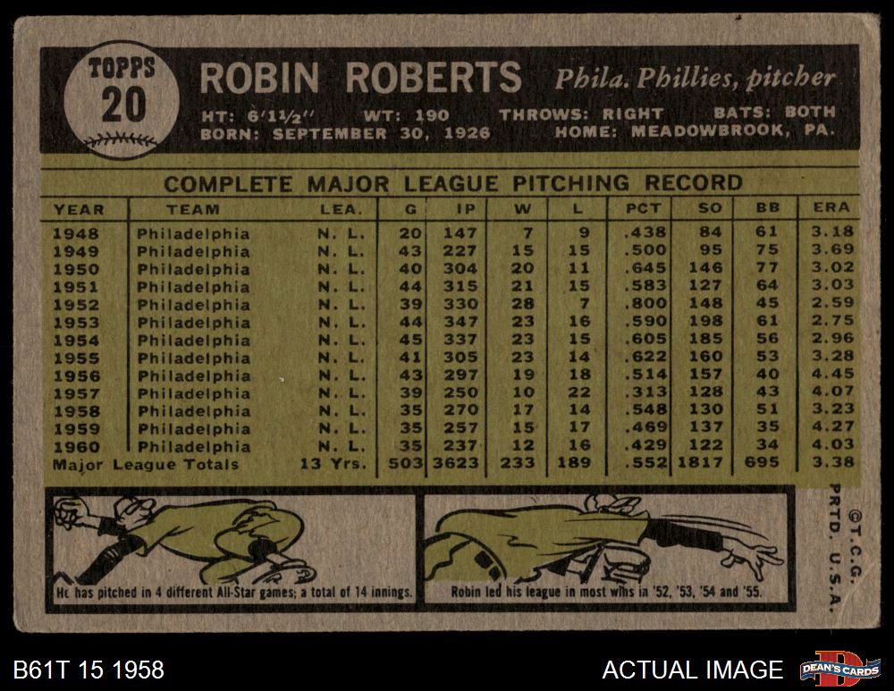 1961 Topps #20 Robin Roberts 2 - GOOD