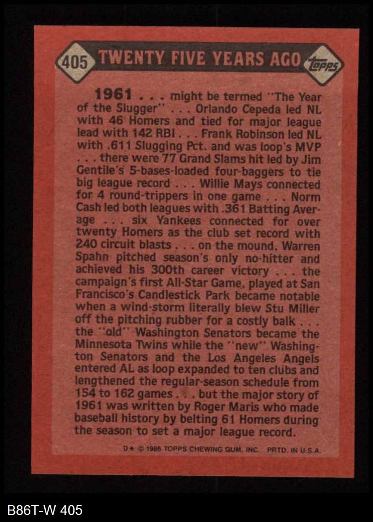 1986 Topps #405 Turn Back The Clock