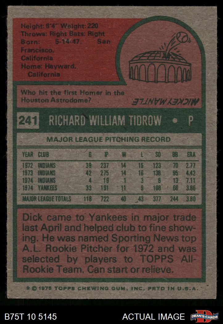 1975 Topps #241 Dick Tidrow 7.5 - NM+