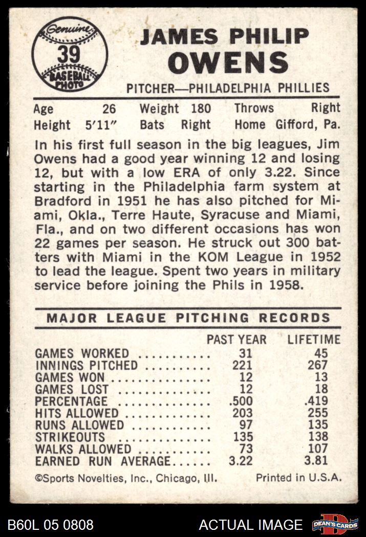 1960 Leaf #39 Jim Owens 3.5 - VG+