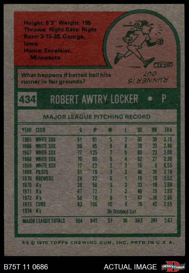 1975 Topps #434 Bob Locker