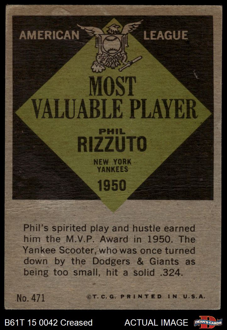 1961 Topps #471 - Phil Rizzuto Most Valuable Player 2 - GOOD