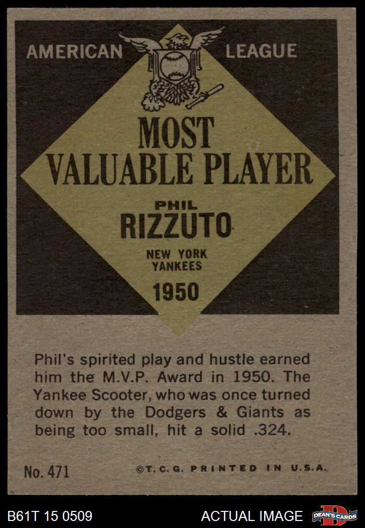 1961 Topps #471 - Phil Rizzuto Most Valuable Player 5.5 - EX+