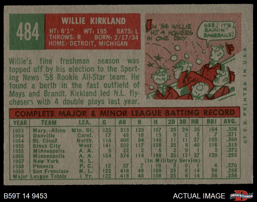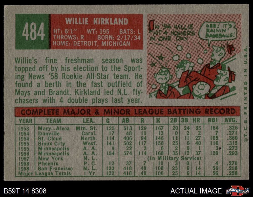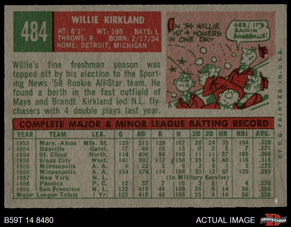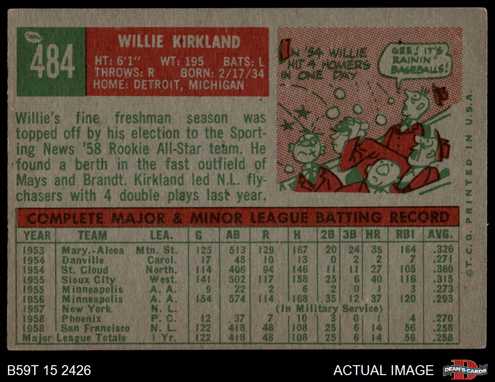 1959 Topps #484 Willie Kirkland
