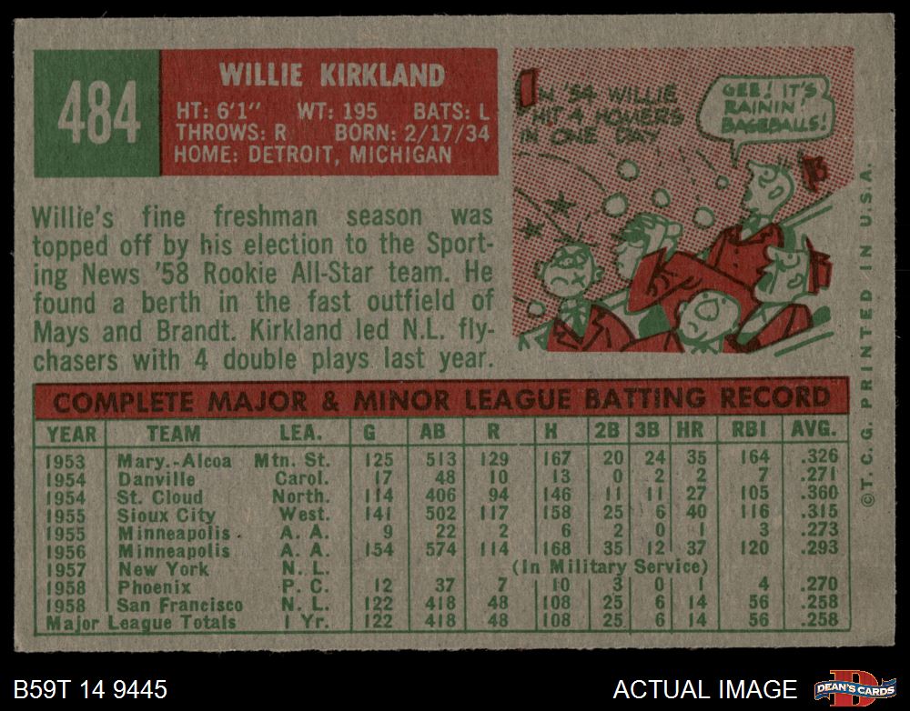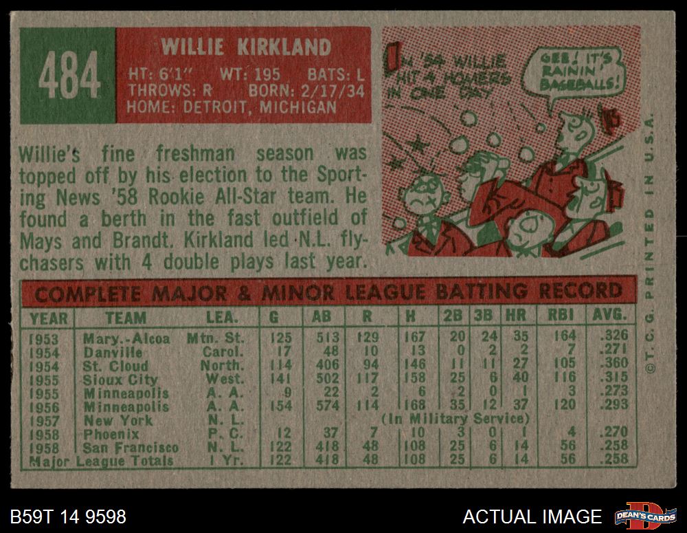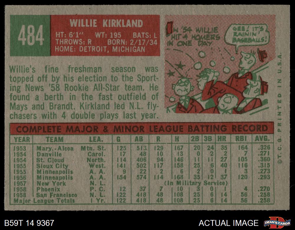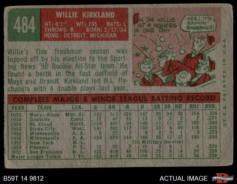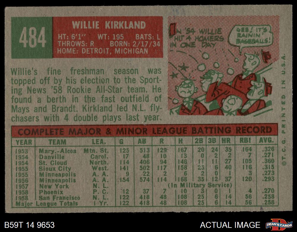 1959 Topps #484 Willie Kirkland