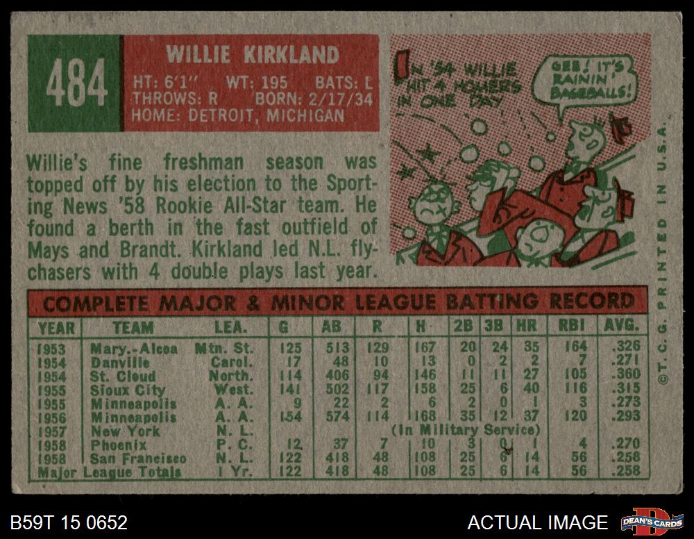1959 Topps #484 Willie Kirkland 4 - VG/EX