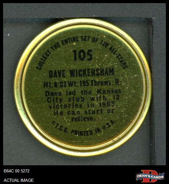 1964 Topps Coins #105 Dave Wickersham 6 - EX/MT