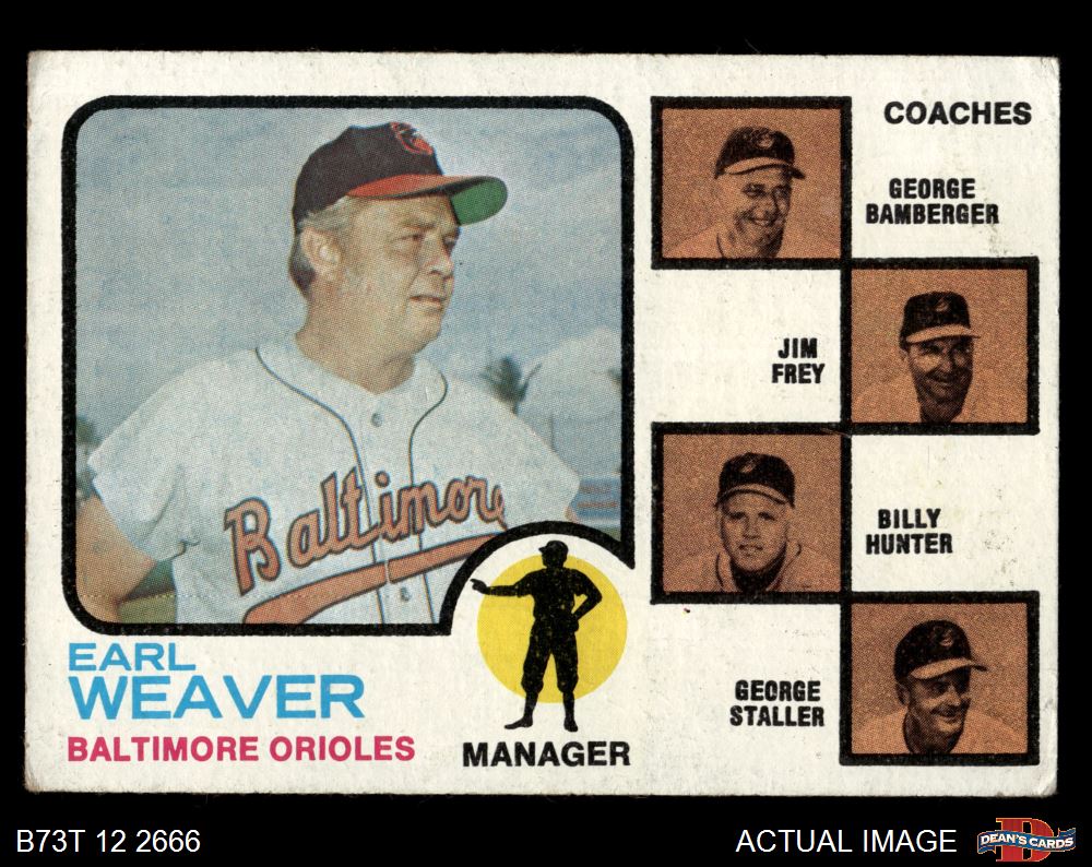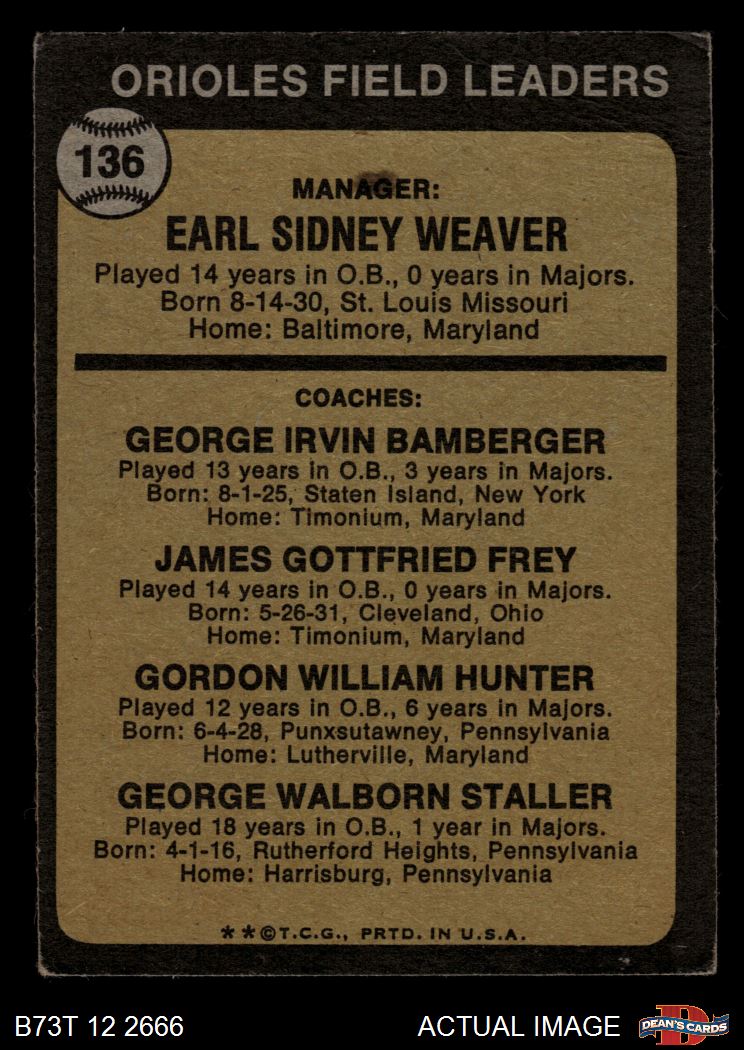 1973 Topps #136 FUL - Earl Weaver / George Bamberger / Jim Frey / Billy Hunter / George Staller Orioles Leaders 2 - GOOD