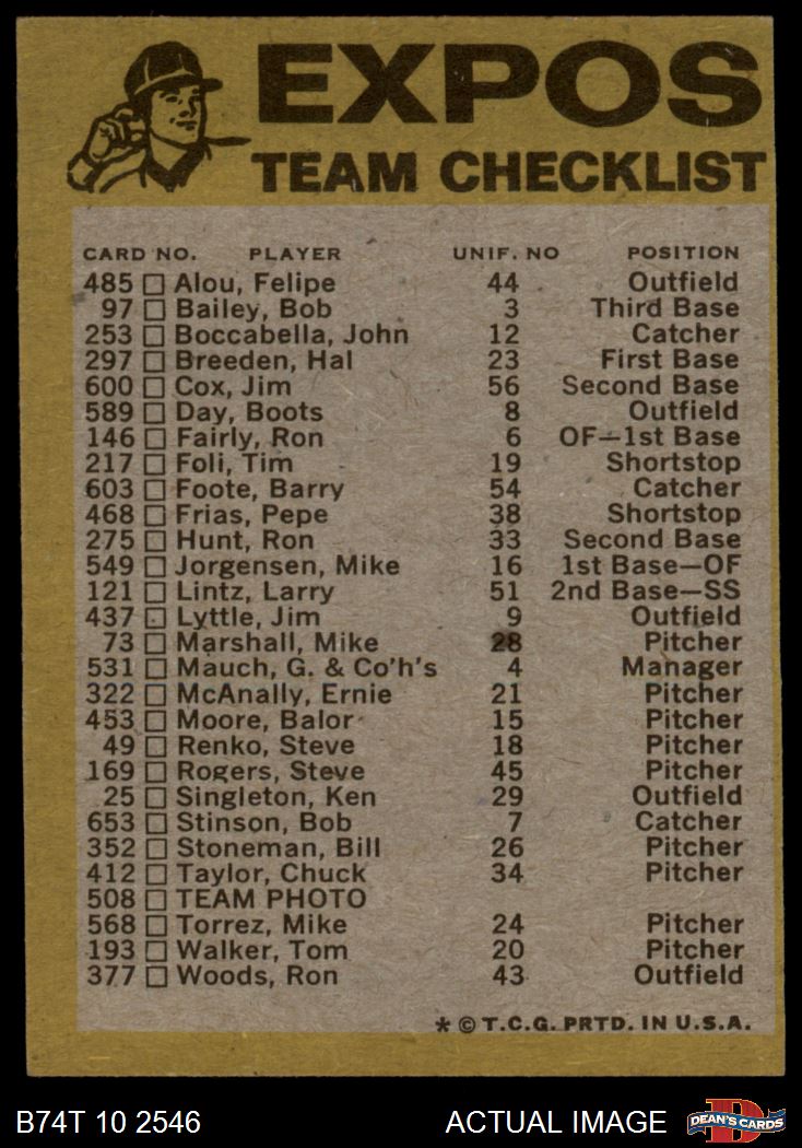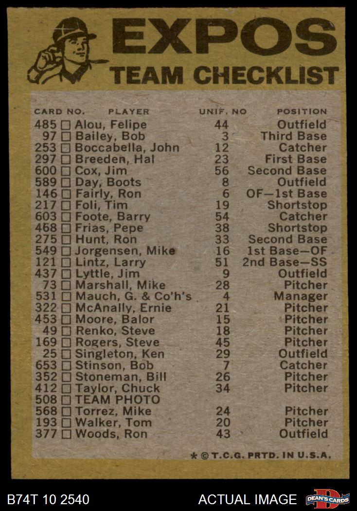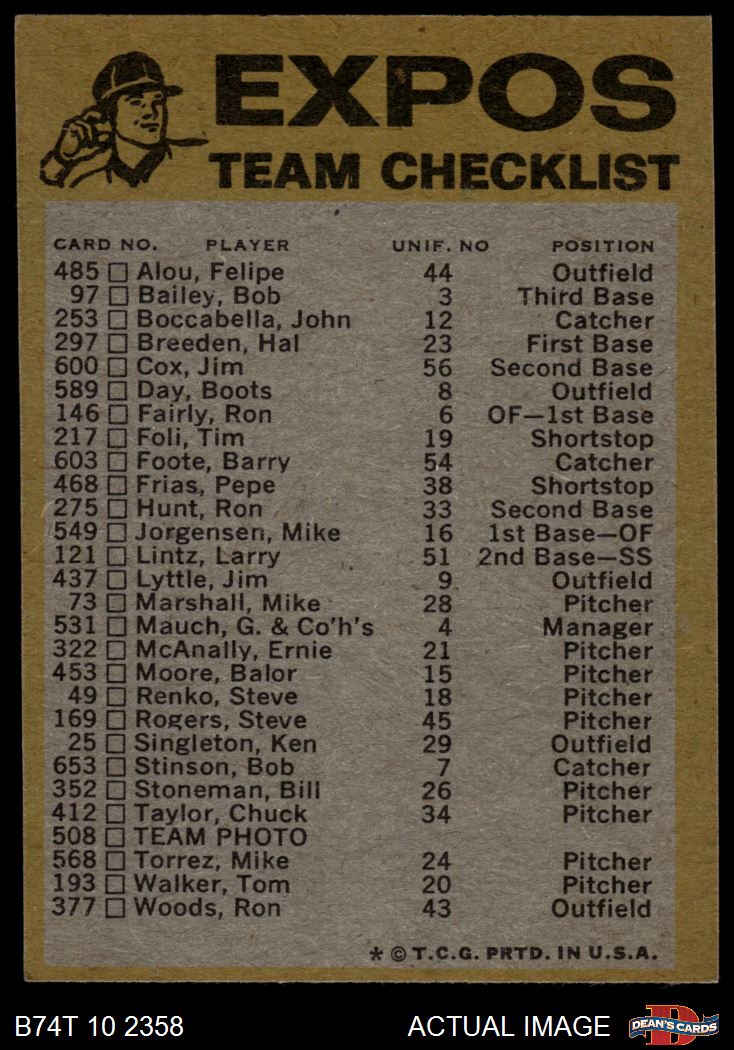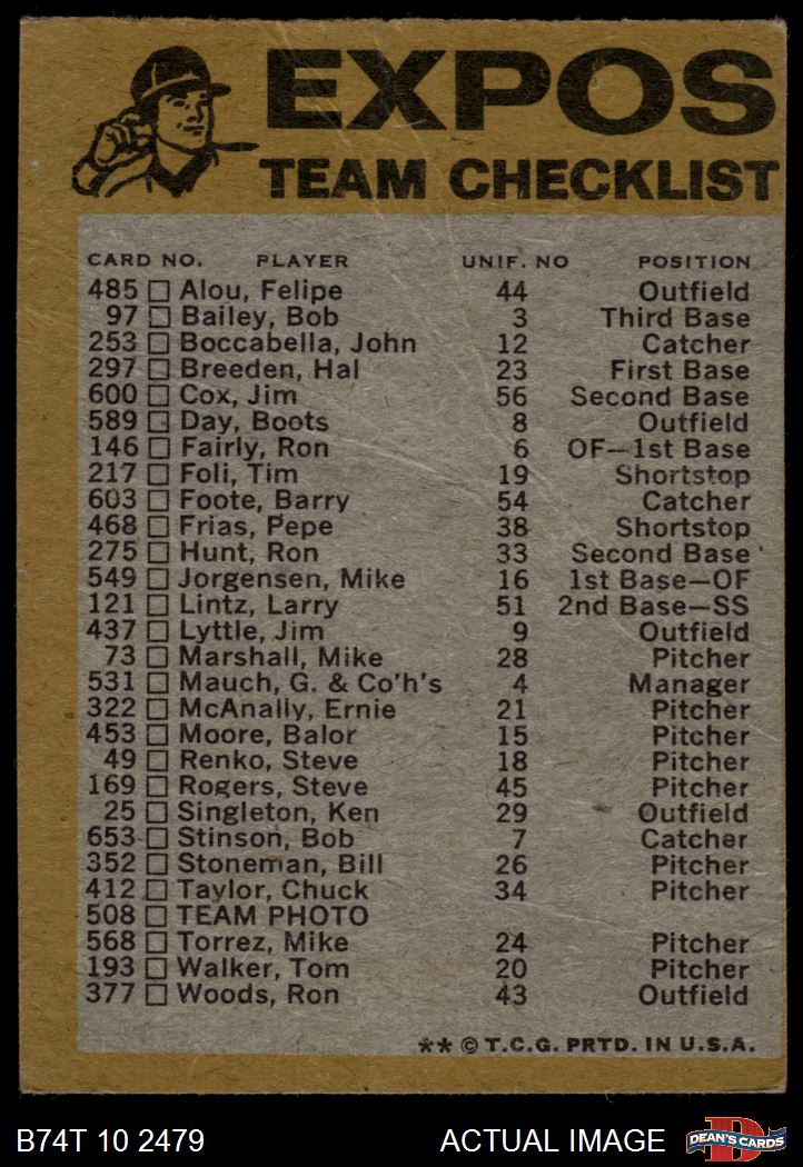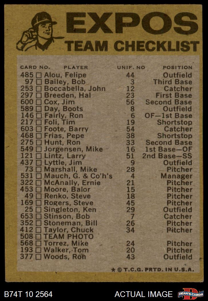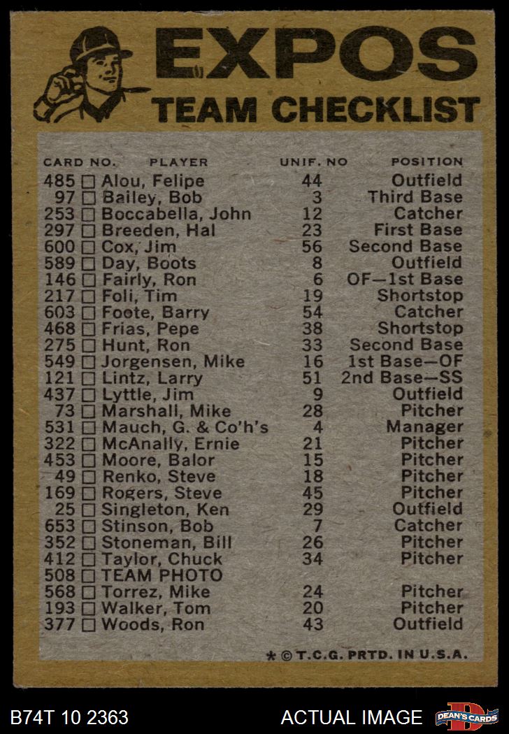 1974 Topps Baseball Cards (18,023 available)1974 Topps Red Team Checklist Expos (19 available)