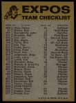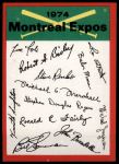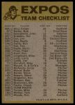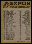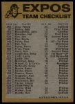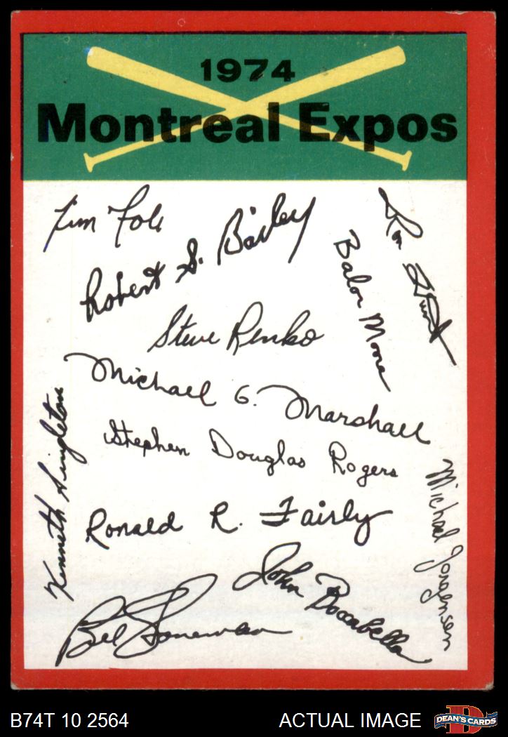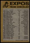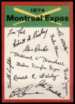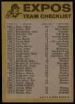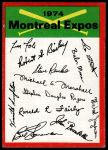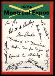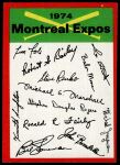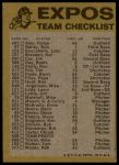 1974 Topps Red Team Checklist Montreal Expos Red Team Checklist