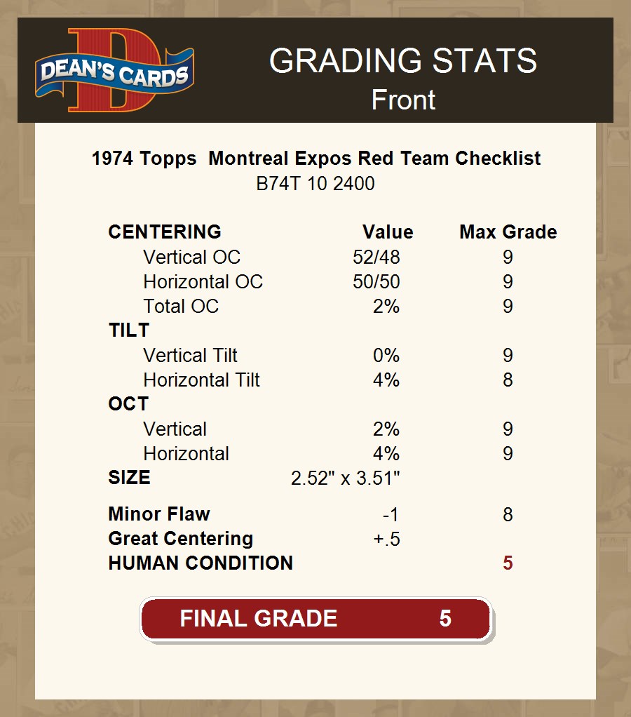 1974 Topps Montreal Expos Red Team Checklist 5 - EX