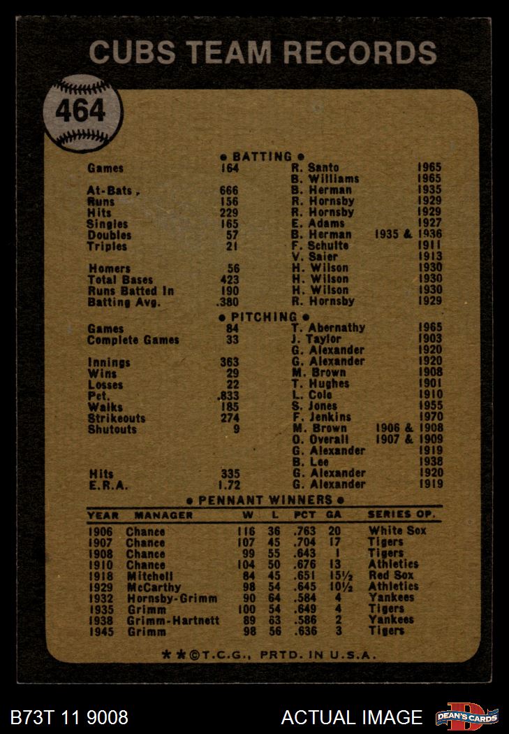 1973 Topps #464 Cubs Team 7 - NM