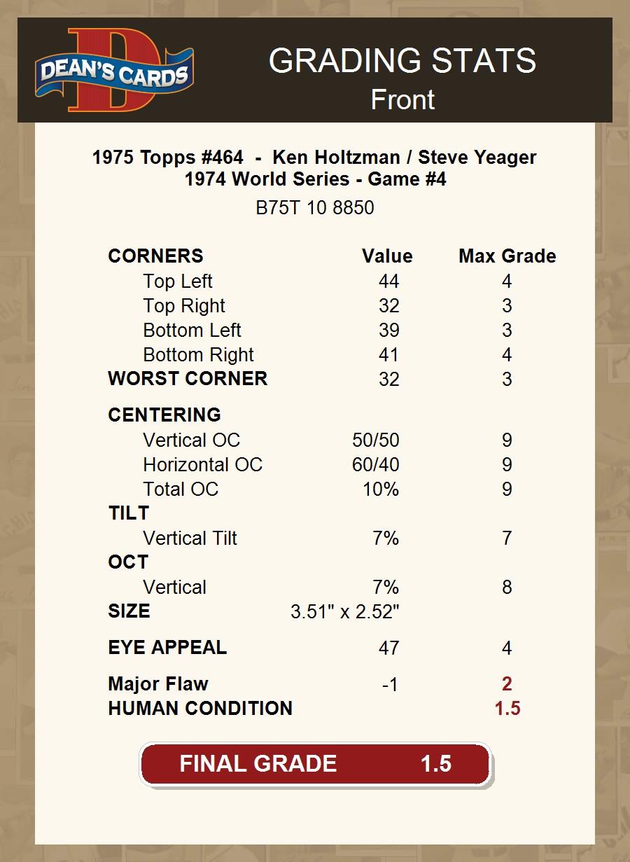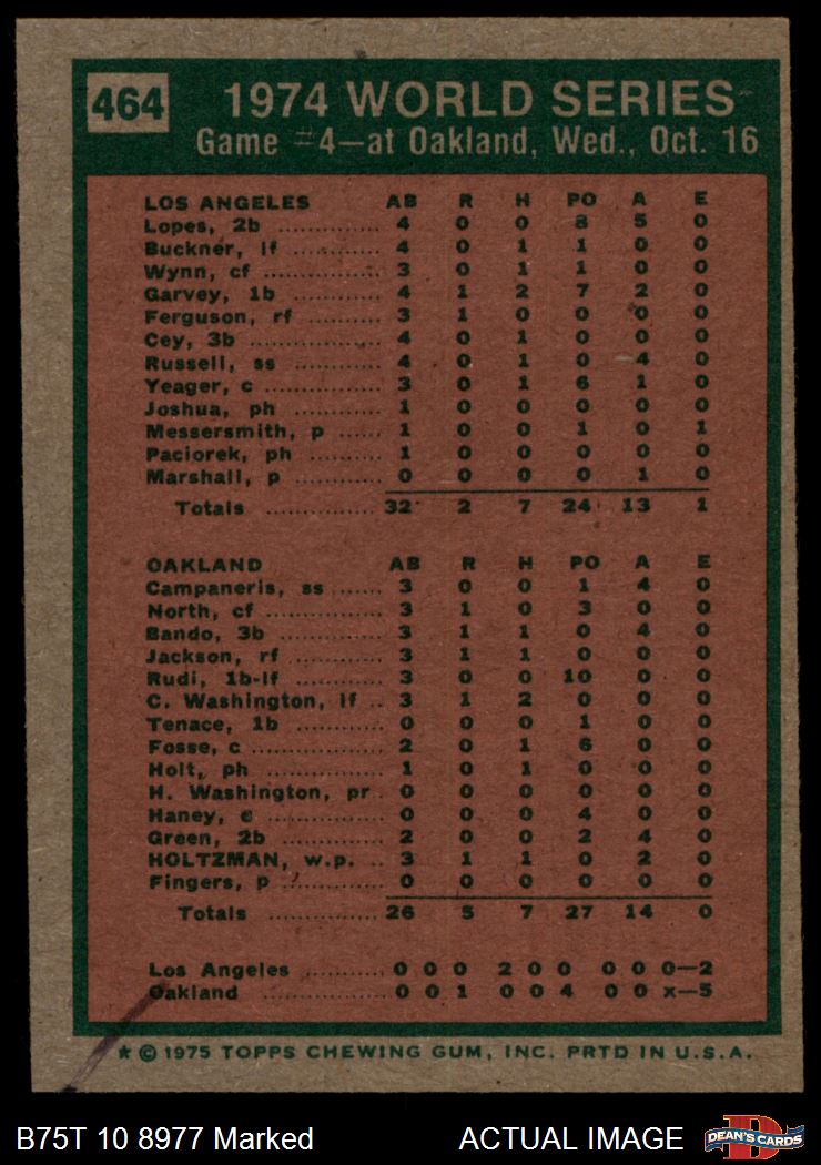 1975 Topps #464 - Ken Holtzman / Steve Yeager 1974 World Series - Game #4 1.5 - FAIR