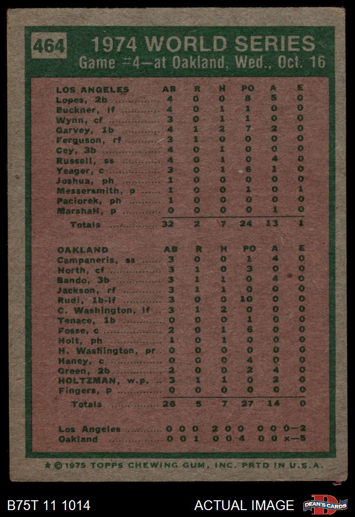 1975 Topps #464 - Ken Holtzman / Steve Yeager 1974 World Series - Game #4 2 - GOOD